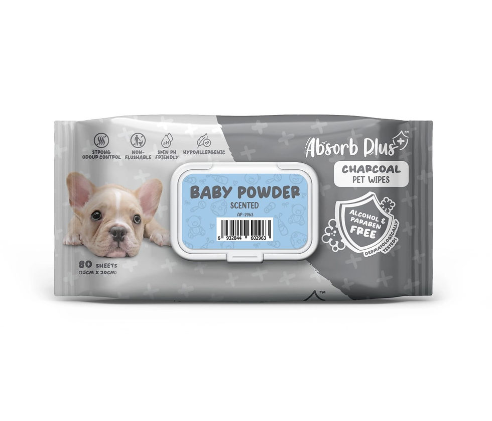 Pet Wipes 80 Sheets, Baby Powder מטליות אנטי-בקטריאלי עם פחם פעיל 80 יחידות